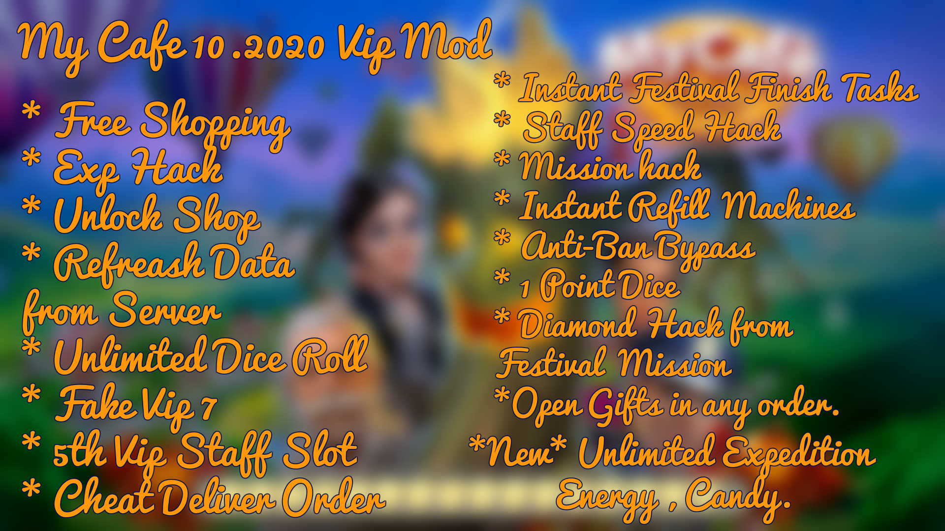 Immediately Ban Your Cafe– So Use it Wisely. - Unlock Shop: This function will unlock all of the items in the shop which require level to unlock.